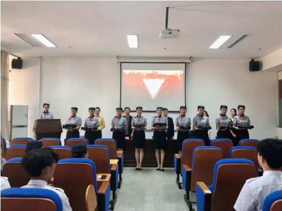 刘金松老师也在仪式上给同学们讲解了一些服饰相关的文化知识,对同学们提出了一些新的希望,穿上制服才只是民航人的起步,今后的路还很长,为了实现飞天梦想,希望身着制服的同学们在尊重制服、爱护制服的同时,要更加热爱民航事业,恪守职业道德,实现个人的蓝天梦。