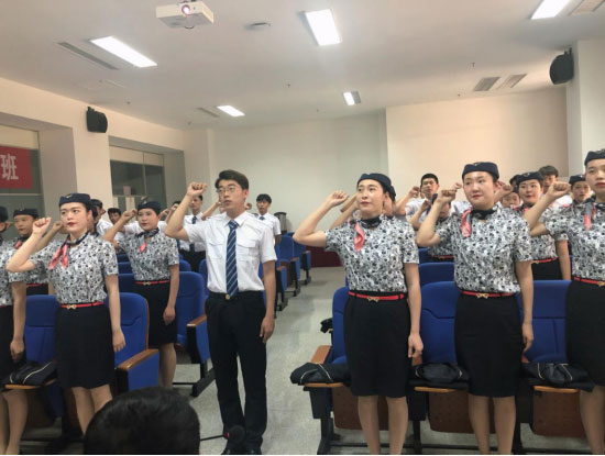 为了培养学生穿着制服的习惯、了解制服穿戴的规范、进一步塑造航空服务型人才应有的形象、增进学生对学校对行业的归属感和责任感,5月29日下午,2019春季航空服务专业授装仪式在研究院报告厅隆重举行。哈工大(威海)继续教育学院院长助理刘金松、职业教育部副部长张君华应邀参加此次授装仪式。